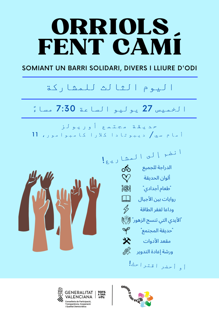 Celebrem aquest any 2023 la jornada de desenvolupament comunitari Orriols Fent Camí, en la qual compartir somnis i propostes per al bé comú del barri.