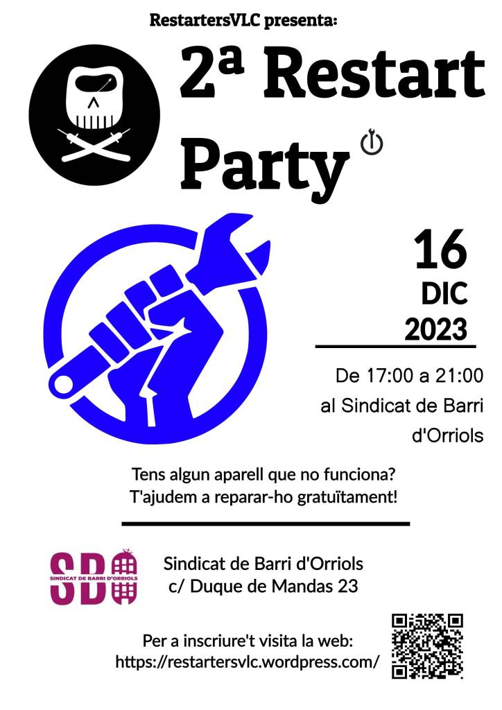 Visitamos la Restart Party de Restarters VLC en la que el grupo de trabajo repara electrodeomésticos y otros materiales para alargar su vida útil. Aprendemos mucho con lxs chicxs de restarters!