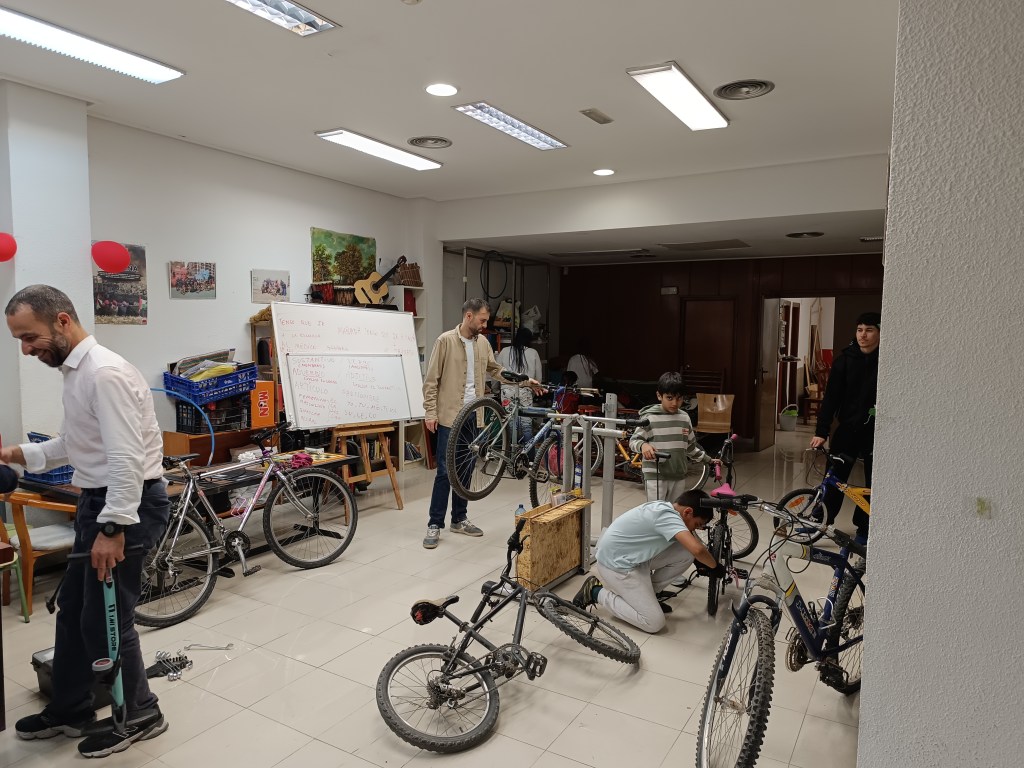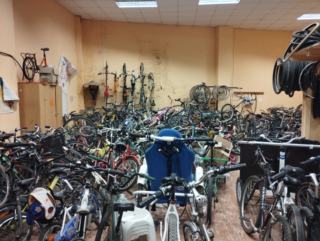 Visitamos el Col.leciu Soterranya de Torrent y su proyecto Bicis para Todas en el que reparan bicis y las donan.