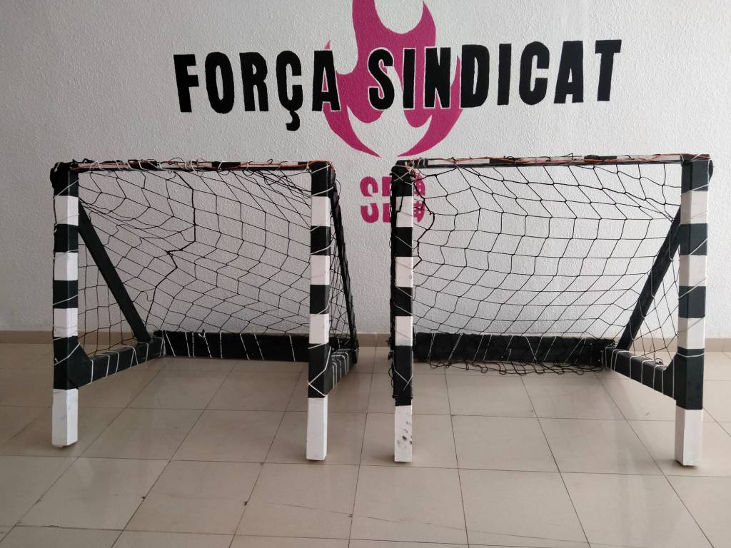El grupo de trabajo construye unas porterías para usar en la zona deportiva del huerto comunitario de Orriols. ¡A nuestros/as niños/as futbolistas les encanta!