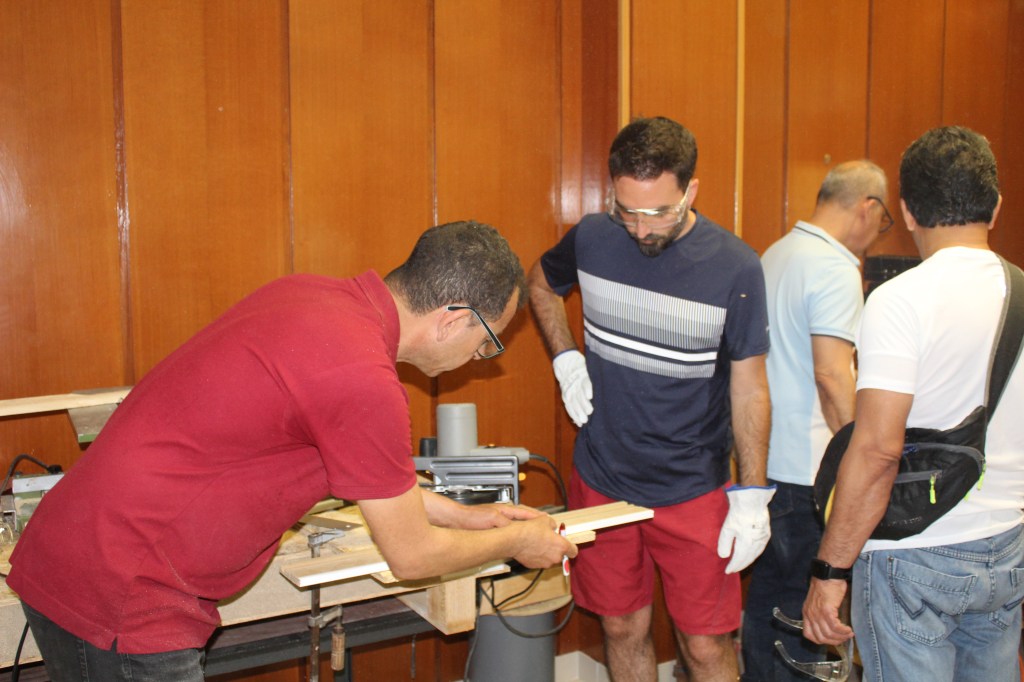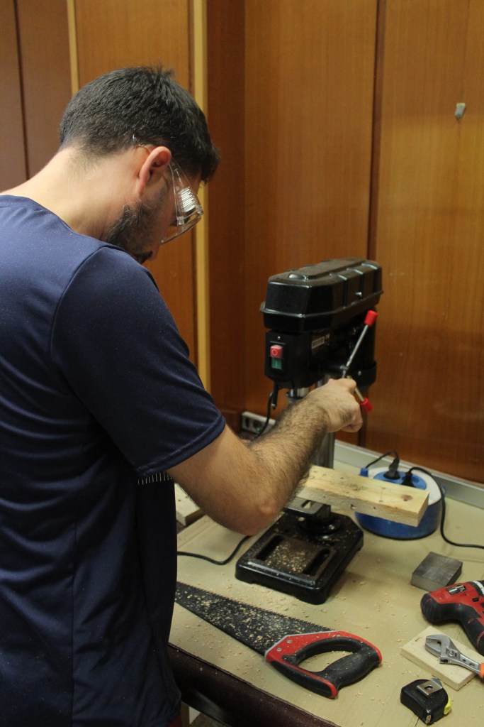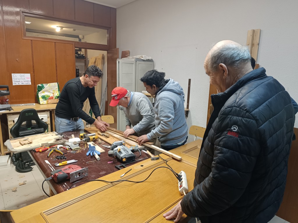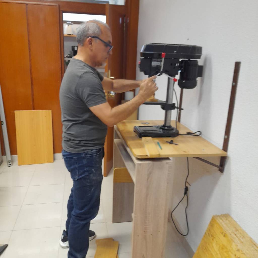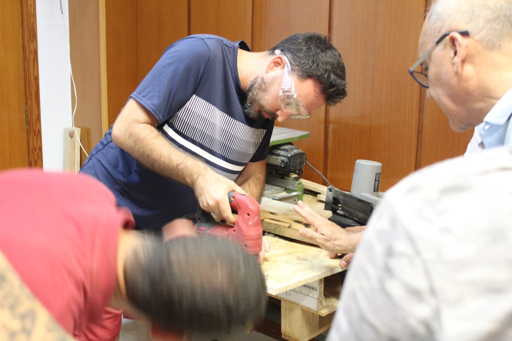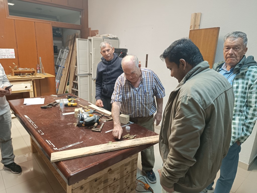 Taller de bricolaje con nuestro vecino y carpintero Serafín, los/las participantes aprender a usar la maquinaria de bricolaje y conceptos básicos para el trabajo de la madera.
