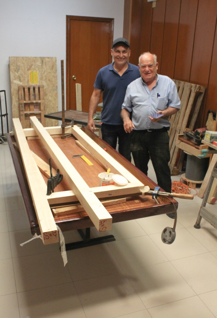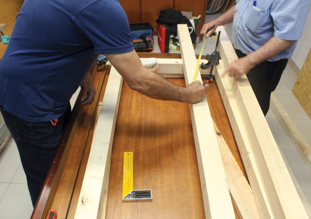 Josué y Serafín comienzan el proyecto con la construcción de la mesa del taller.